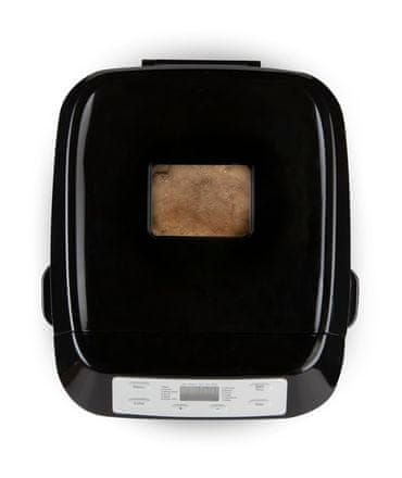 Popolnoma avtomatski aparat za peko kruha zlahka gneti, vzhaja in speče okusen domači kruh ali pa vam preprosto pomaga pri pripravi testa ali njegovem vzhajanju. Izbirate lahko med 12 prednastavljenimi programi, zakasnite začetek pečenja za do 13 ur ali nastavite stopnjo pečenosti skorje za programe peke. Zahvaljujoč preglednemu zaslonu imate vedno pregled nad nastavitvami in preostalim časom do konca programa. Če niste v bližini aparata za peko kruha, da bi takoj po peki vzeli ven pečen kruh, bo aparat za peko kruha samodejno ohranjal kruh topel še eno uro. Nelepljiva površina posode za gnetenje in gnetilnega kavlja vam bo olajšala stresanje kruha iz posode in odstranitev gnetilnega kavlja.