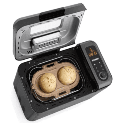 • Zahvaljujoč dvema različno velikima posodama za kruh lahko pripravite veliko štruco za vso družino, lahko pa tudi dva manjša kruha, vsaka zase. Manjša posoda je idealna tudi za pripravo testa za žemljice, ali ko potrebujete veliko manjšo količino testa.