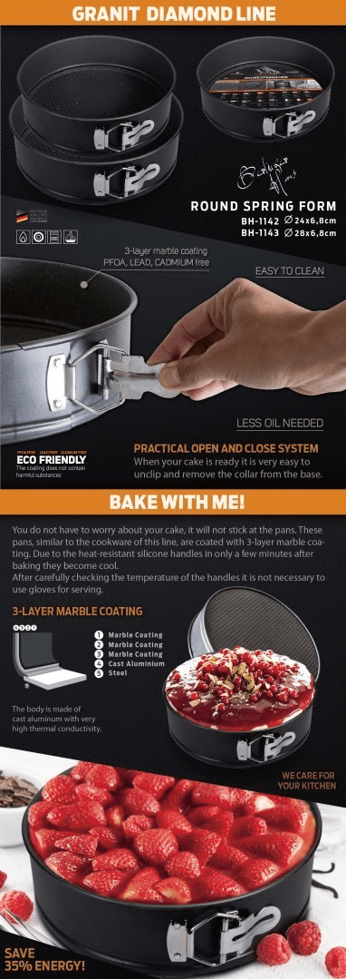Okrogel model za torte 28 × 6,8 cm, granitna prevleka, Berlinger Haus Granit Diamond Line BH-1143 .