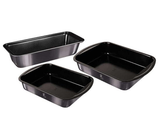 Uporaba: za peko peciva, pite, kruha, peko hrane ali pripravo čipsa v pečici. Ima robustno konstrukcijo, ki je odporna proti deformacijam in se dobro segreva ter zagotavlja enakomerno porazdelitev toplote po celotni površini. Odlično dopolnjuje številne druge kose iz kolekcije Berlinger Haus Metallic Line. Lastnosti: Kalupi so na zunanji strani prevlečeni s toplotno odpornim lakom z značilnim kovinskim sijajem. Črni premaz proti prijemanju Možnost peke pri temperaturi do 220 stopinj C Primerno za pomivanje v pomivalnem stroju. Ne vsebuje spojin PFOA, kadmija in svinca. Ekološko prijazno Barva: grafitna kovinska Dimenzije: 35 × 27 × 6,5 cm 40 × 28,5 × 7 cm 33 × 14 × 7 cm Komplet je zapakiran v pisani škatli.