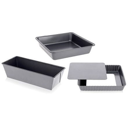 Značilnosti:- kvadratni pekači v omejeni izdaji- popoln komplet za pripravo hrustljavih domačih tort v kvadratnih pekačih- za ljubitelje peke, ki želijo izboljšati svojo umetnost- vsebina paketa: 3 jekleni pekači s premazom proti prijemanju brez PFOA ali PFOS1) kvadratni naguban pekač za torto, velikost stranice 23 cm 4709.232) pravokotni pekač za torto/kruh velikosti 30×10 cm 4716.30+ BREZPLAČNO: kvadratni pekač za torto velikosti 22,5 cm 4700.22– okolju prijazna embalaža