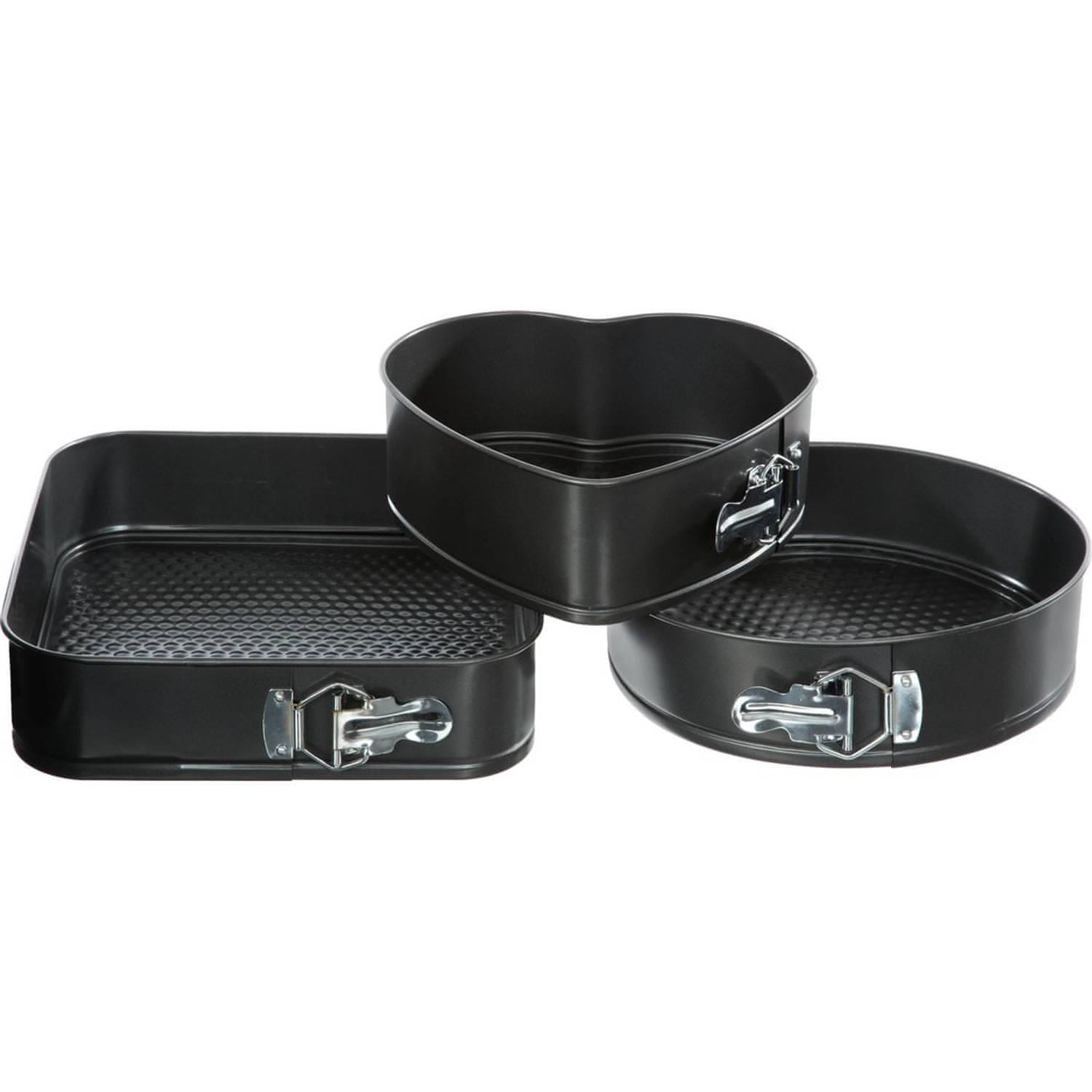 Ta komplet vključuje tri različne vzmetne ponve, ki jih lahko uporabite za peko in kuhanje. Zahvaljujoč vzmetnim pekačem se poveča možnost, da vaše pecivo ne bo le dobro, ampak tudi lepo in enostavno vlečeno iz kalupa. Zakaj ne bi presenetili nekoga, ki vam je všeč, s čečkasto torto v obliki srca!
