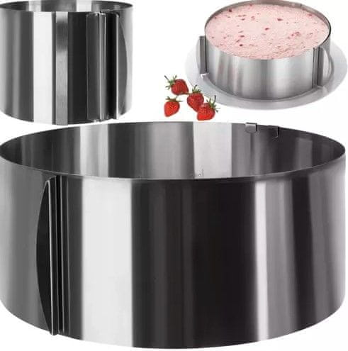 Prilagodljivo platišče za peko peciva, peciva in gobice je visokokakovostno orodje, ki olajša pripravo različnih pekovskih izdelkov. Platišče ima okroglo obliko in je izdelano iz kakovostnega nerjavečega jekla, kar zagotavlja trajnost in varnost pri uporabi. Notranja stran platišča ima zelo uporabno območje nastavitve premera od 16 do 30 cm v korakih po 2 centimetra.