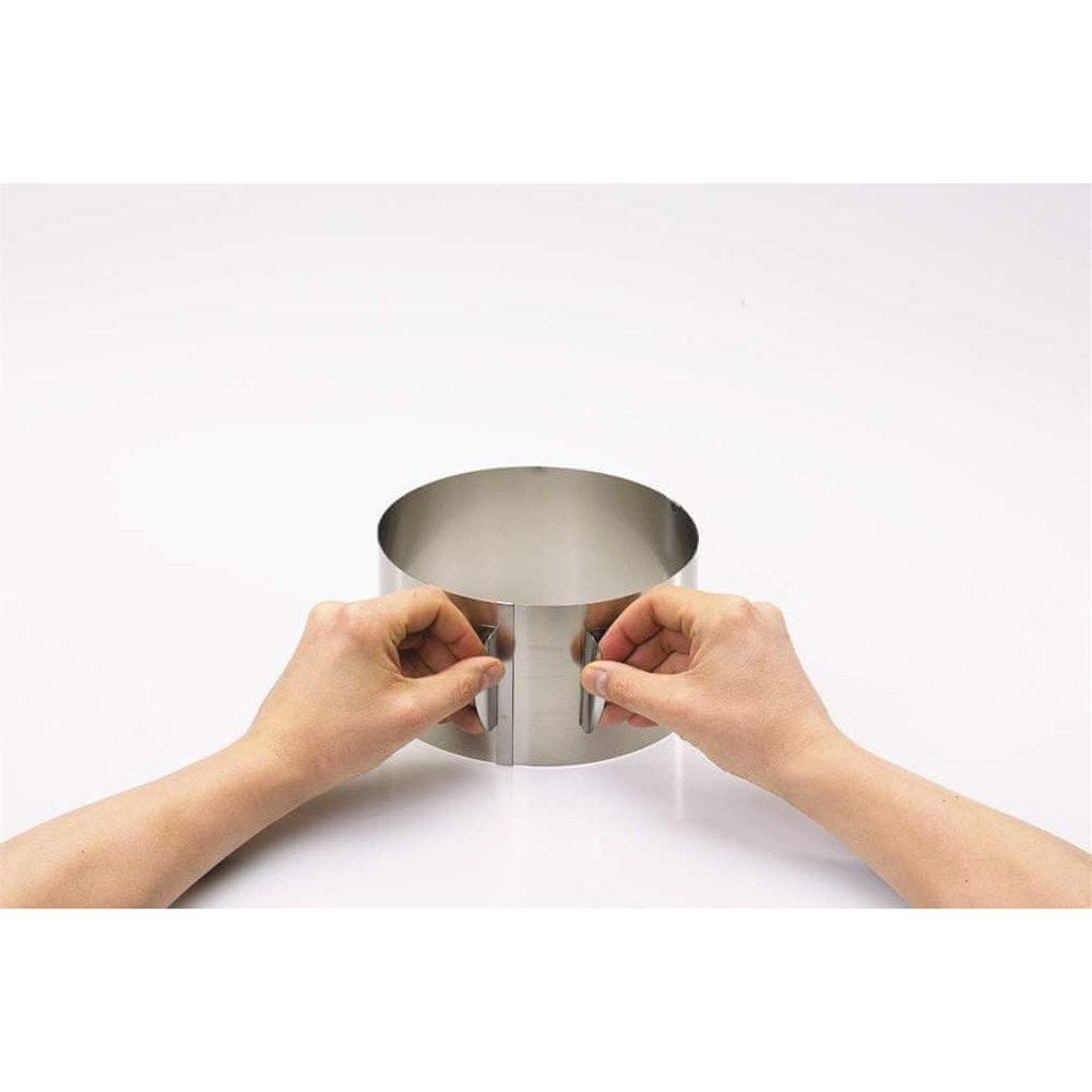 Obroči za torto iz nerjavečega jekla, visok 8,5 cm ali 10 cm. Idealen za pripravo tort, zelenjavnih ali mesnih enolončnic. Njegov premer je mogoče nastaviti od 16 cm do 32 cm. Enostavno čiščenje zaradi popolnoma raztegljive zasnove.
