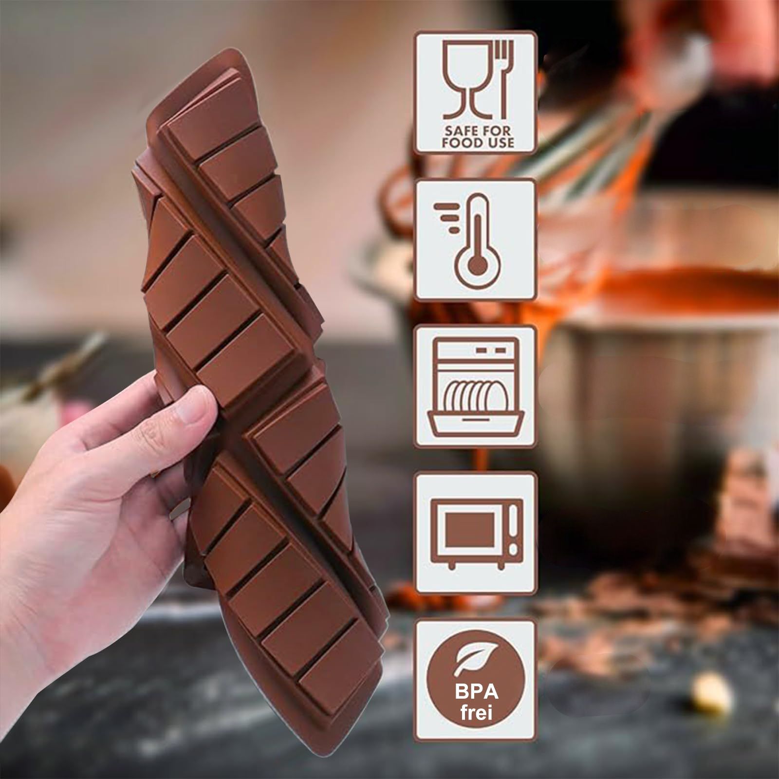 Komplet kalupov za čokolado DAILIENFUS je idealna izbira za vsakogar, ki želi ustvariti edinstvene čokoladne tablice v udobju svojega doma. Zahvaljujoč visokokakovostnim materialom, enostavni uporabi in popolni opremi postane priprava sladkarij užitek. Odličen oprijem, temperaturna odpornost in enostavno čiščenje naredijo komplet praktičen in trpežen. Naročite še danes in začnite izdelovati čokolado v dubajskem stilu.