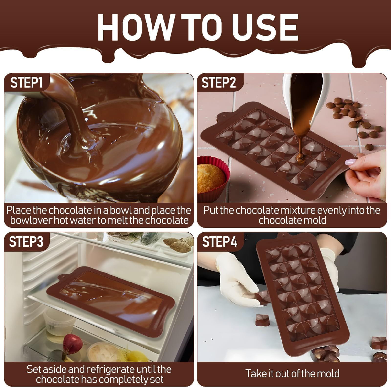 - Uporaba: čokoladice, marcipan, ledene kocke, ploščice, DIY sladkarije