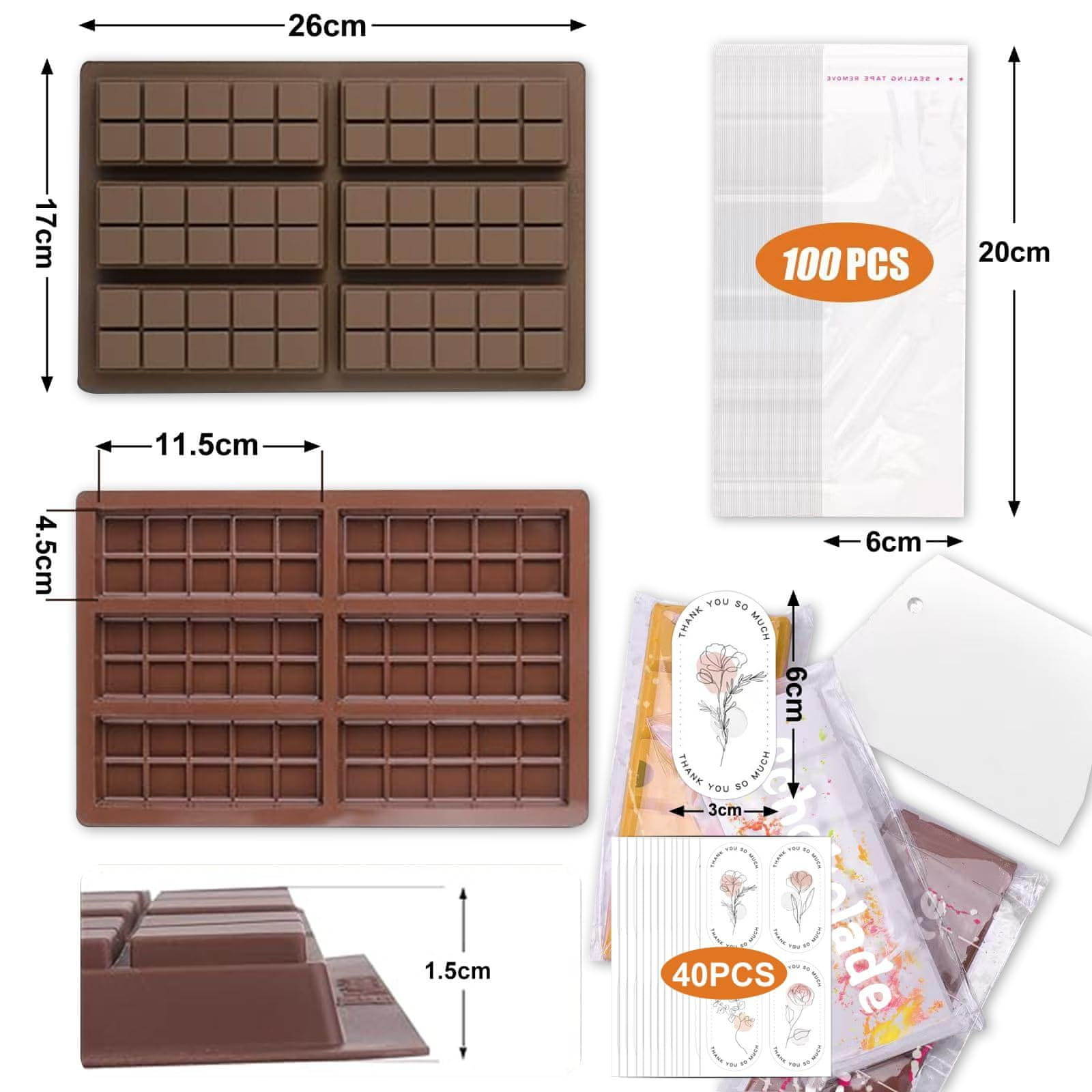 Nikcorp Silikonski model za čokolado 6 ploščic s lopatko, vrečkami in nalepkami | Pekač za domače čokoladne tablice