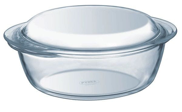 Pyrex okrogli pekač s pokrovom 2,1L, iz borosilikatnega (kaljenega) stekla