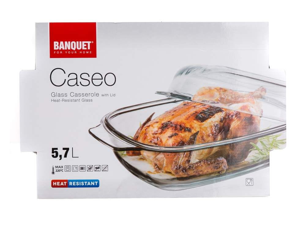 Pekač CASEO, steklen, s pokrovom, kvadraten, 5,7 l