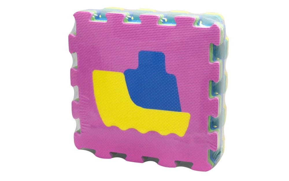 Plošče iz pene z motivom vozil so primerne za otroke od 10. meseca starosti dalje. Velikost ene plošče je 300×10×300 mm. V setu je 9 plošč. Celoten opis