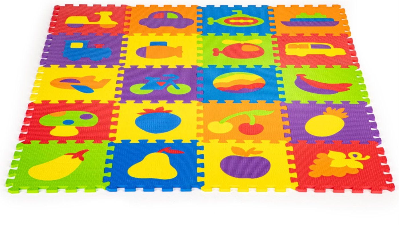 Sestavljanke iz pene z motivom vozil in sadja za otroke od 3. leta starosti. Sestavljanka ima nazobčano površino, v vsakem delu pa so odstranljivi koščki. Varno in mehko podlogo je mogoče prati, absorbira hrup in ščiti pred mrazom, zato je idealna kot igralna podloga ne le za otroške sobe. Debelina sestavljanke iz pene je 0,9 cm. Velikost enega kosa je 29 × 29 cm (merjeno od zoba do izreza). Velikost sestavljene sestavljanke je približno 148 × 119 cm.