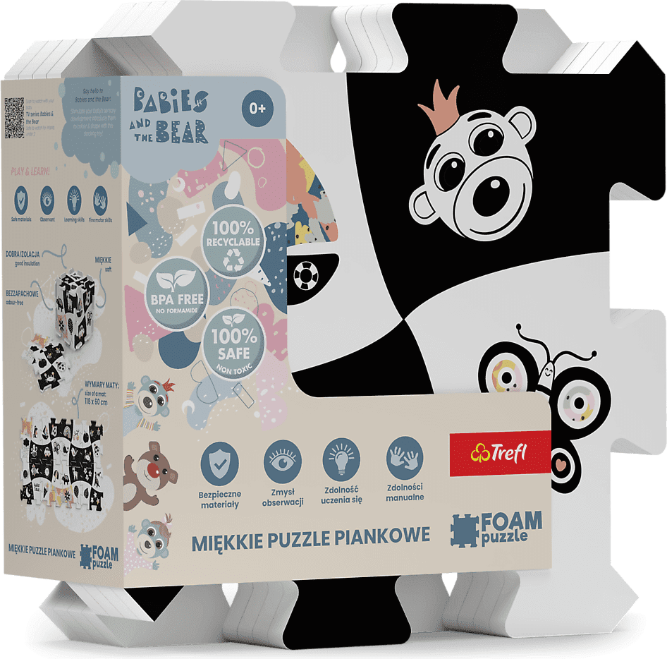 Penasta podloga je izdelana iz posebnega materiala (ne gre za klasično školjkasto peno EVA, temveč za material, podoben debeli avtomobilski vzmetnici ali večplastnemu mirelonu). Ima dodatno debelino 1,5 cm in je zasnovana posebej za igranje. Sestavljanka je mehka, pralna, zdravju varna, enostavna za rokovanje in zložljiva. Iz posameznih delov lahko sestavite kocko, predor za avtomobile ali čudovito stensko dekoracijo. Iz osmih posameznih delov lahko sestavite površino velikosti približno 117 × 60 cm. Penasta sestavljanka TREFL PUZZLOPIANKA je primerna tudi kot podloga pri igranju s plastelinom ali slikanju s kredami. Po uporabi sestavljanko preprosto obrišite z vlažno krpo.