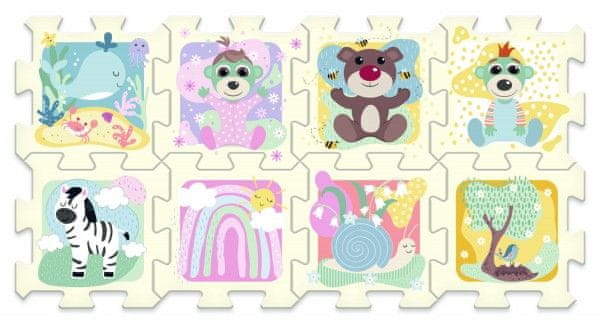 Licenca za sestavljanko iz pene. Vsebujejo 8 velikih kosov, so mehke, pisane, enostavne za pranje in jih lahko uporabite za sestavljanje 3D-oblik, kot sta kocka ali škatla. Uporabljate jih lahko tudi kot igralno podlogo. Sestavljanke iz pene razvijajo otroško domišljijo ter pomagajo otrokom pri učenju barv in oblik. Dimenzije paketa 32 × 32 × 13 cm. Primerno za otroke od 0 mesecev dalje.