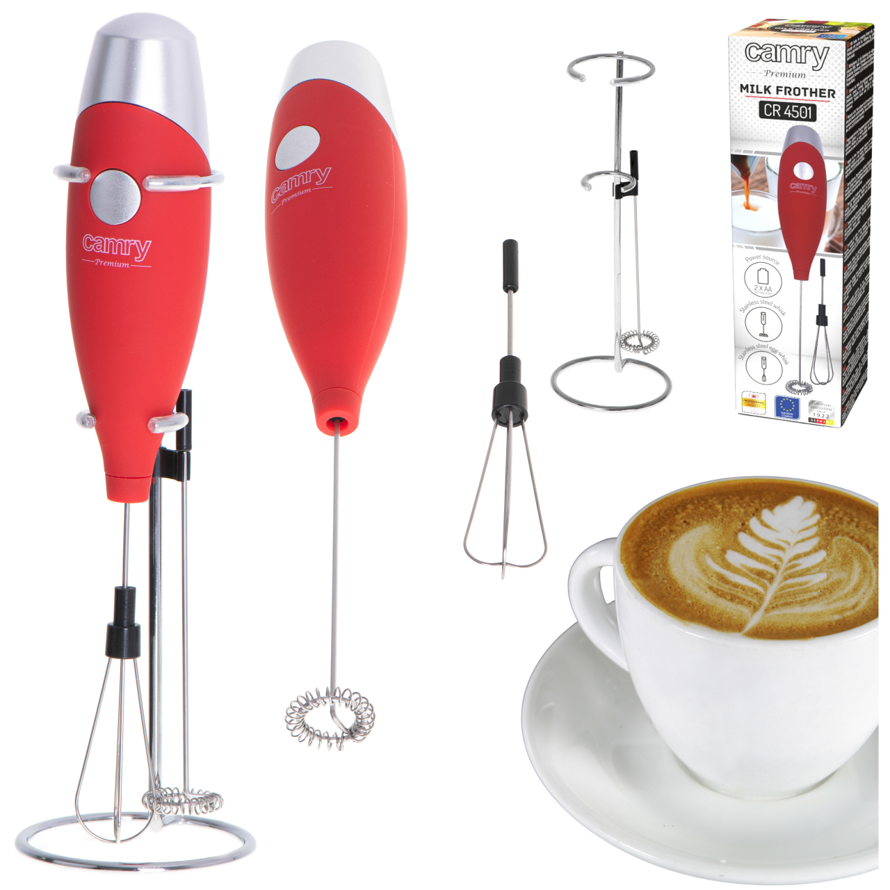 Za pripravo mlečne pene za okusen kapučino in macchiato, vročo čokolado ali matcha čaj | Napajanje: 2×AA bateriji | Rdeč penilnik (mehak dotik) |