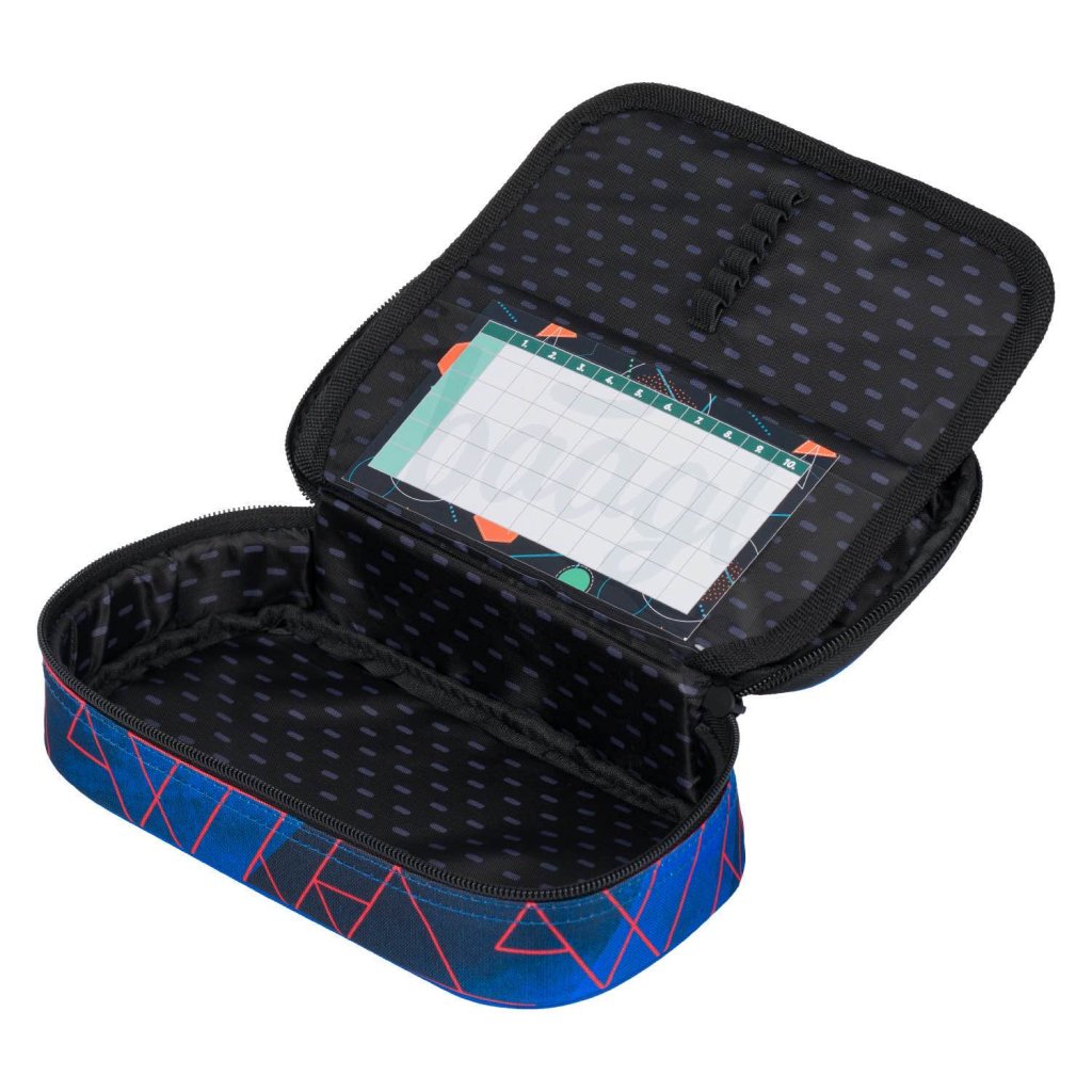 • Trpežen šolski svinčnik z notranjo pregrado na tečajih – Notranji žep z zadrgo – Vključuje urnik – Brez polnil