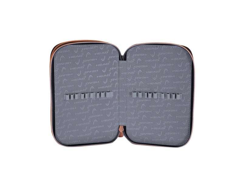 Dvonadstropni svinčnik Head meri 20,5 × 13 × 4,5 cm in ponuja veliko prostora za shranjevanje pisal, svinčnikov, ravnila, ostila in drugih šolskih potrebščin. Zapiranje z zadrgo zagotavlja varno shranjevanje predmetov in preprečuje njihovo izpadanje.