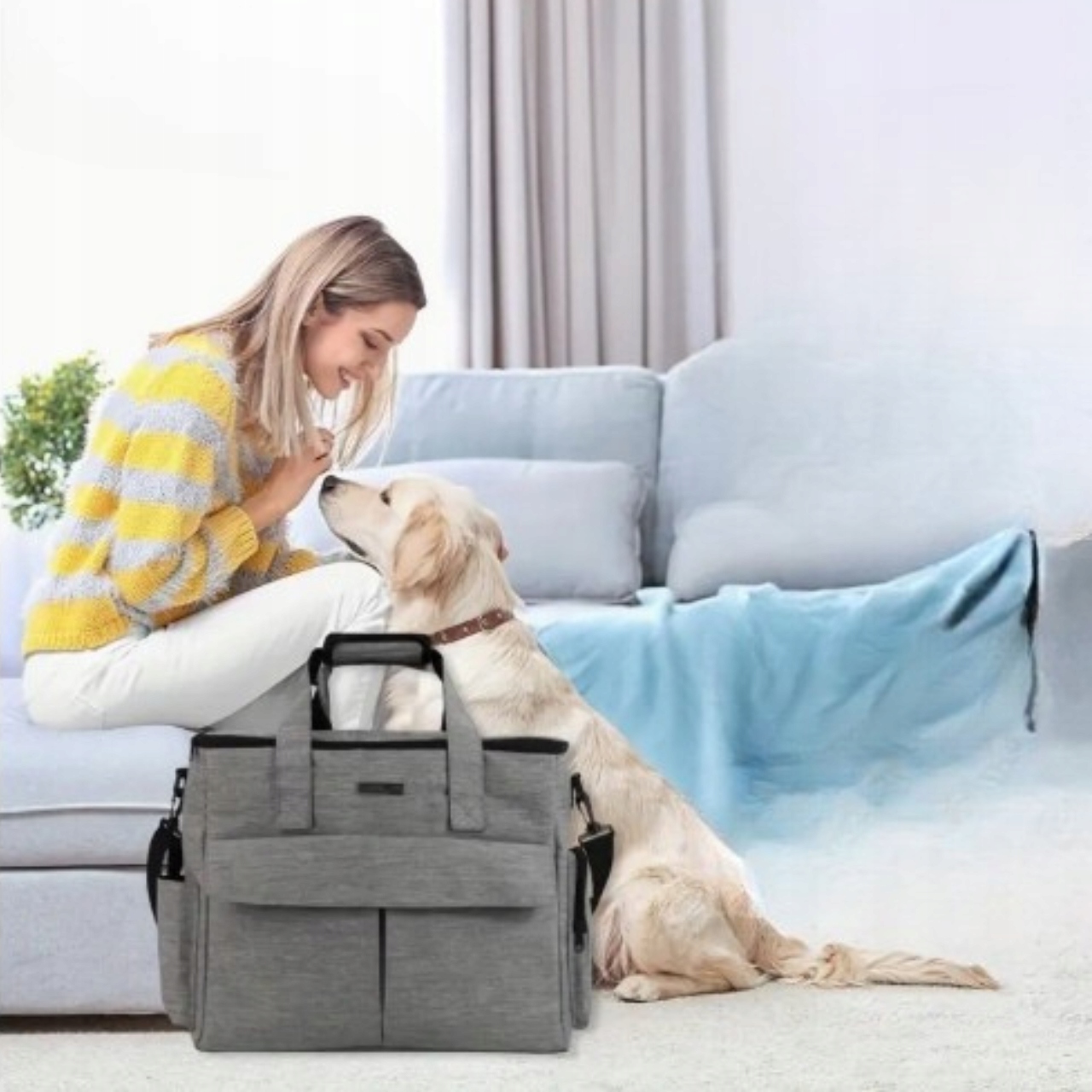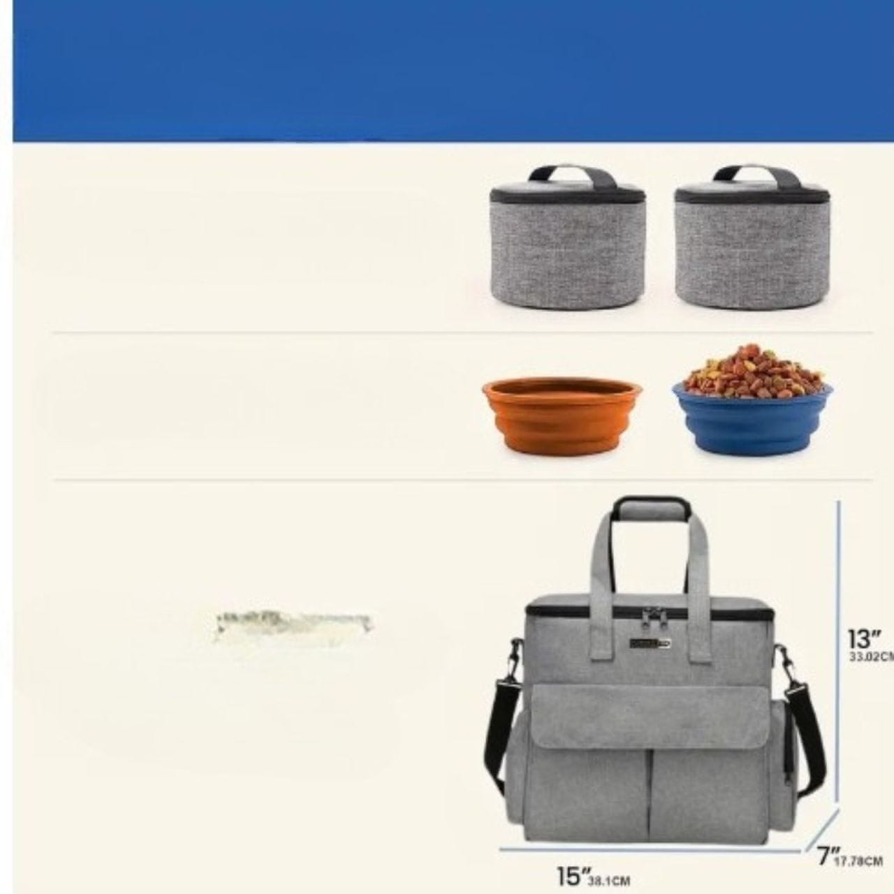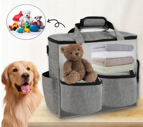 Opremljen zročaji in snemljiv naramni pas, je torba popolna za vsako situacijo. Stranski žepi držijo povodce, dokumente, priboljške ali vrečke. Torba se enostavno zloži – popolna za shranjevanje v omari. jepraktična in elegantna rešitevza aktivne lastnike.