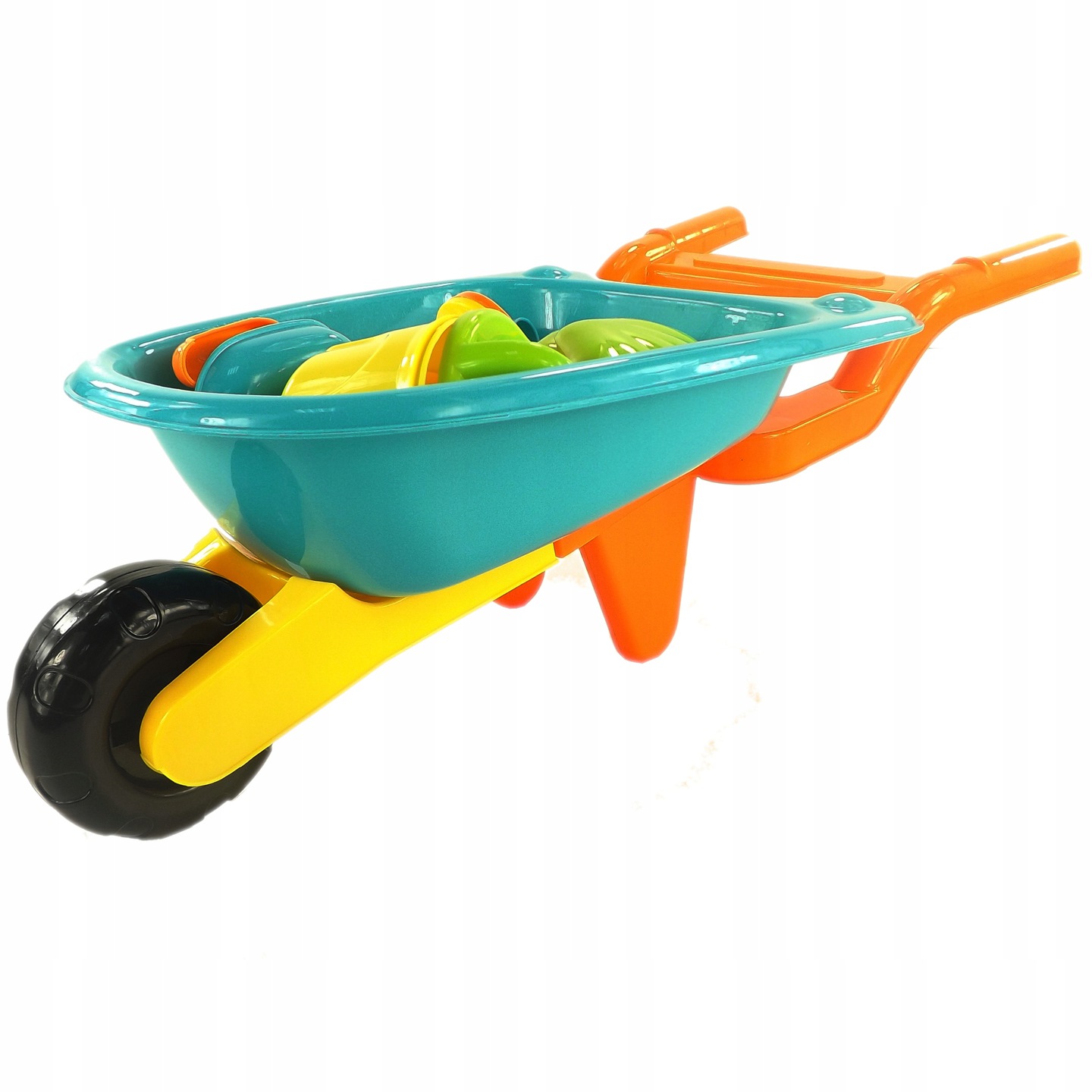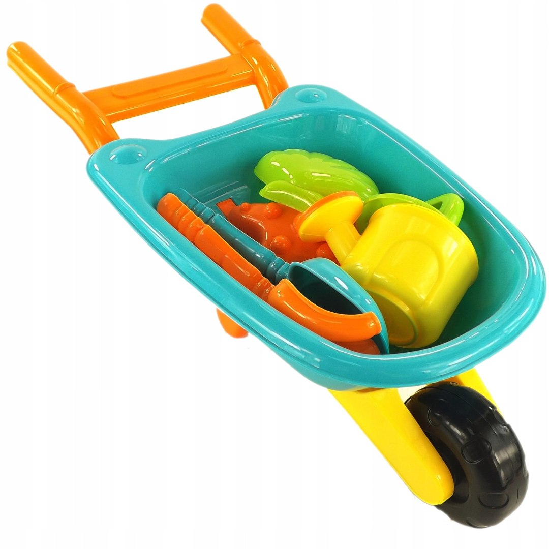Naš komplet s samokolnico, zalivalko, modelčki in vrtnim orodjem zagotavlja neskončno zabavo.