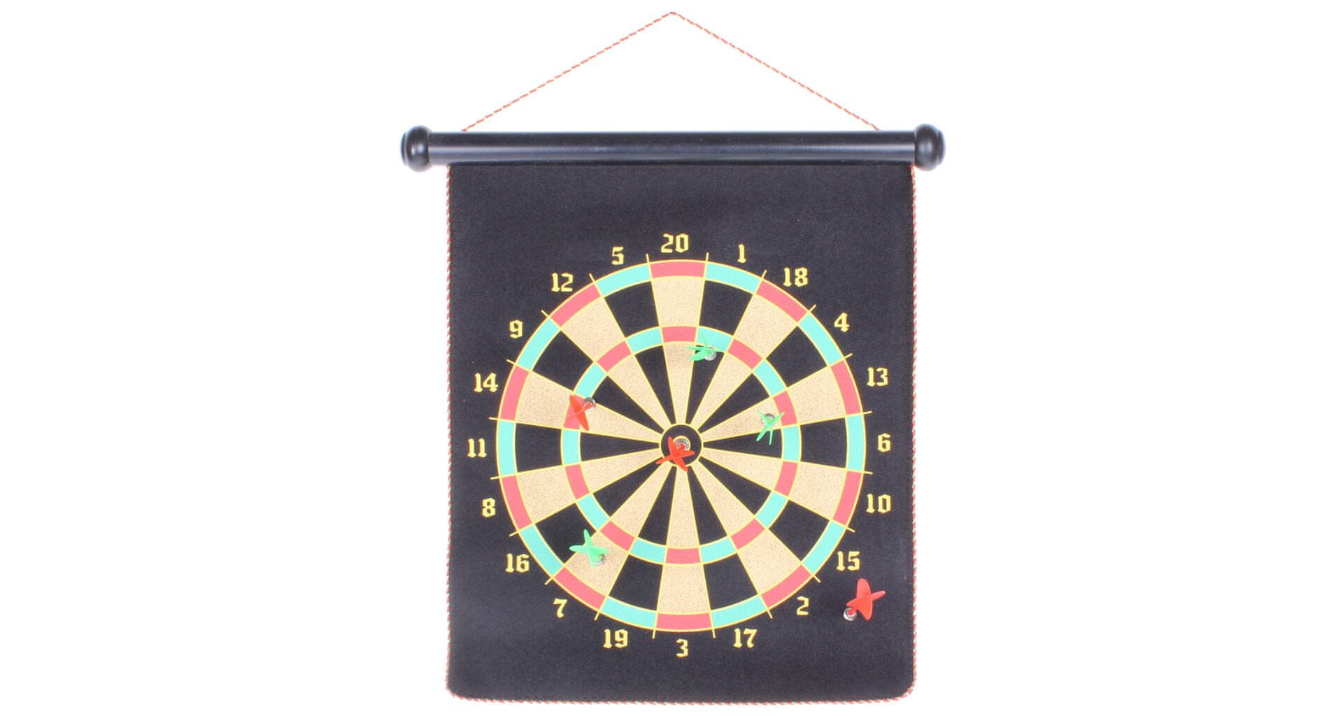 Obojestranska magnetna tabla za pikado Merco Roll Up bo odličen dodatek k vaši zbirki iger. Prilagodljiva magnetna tabla velikosti 42 × 37 cm, prevlečena s semišem, vsebuje klasično tablo za pikado na eni strani in igro s kroglo na drugi strani. Tarča vključuje tudi šest plastičnih, 8 cm dolgih puščic (tri rdeče in tri zelene) z magnetom premera 1 cm. Magnetne puščice Merco Roll Up niso le zagotovljena zabava, temveč tudi varna zabava. Uporaba magneta na puščicah preprečuje poškodbe igralcev (zlasti najmlajših) in poškodbe vrat, pohištva ali sten, odvisno od tega, kam postavite magnetno tarčo Merco Roll Up. Ko je igre konec, tarčo preprosto zvijete v zvitek velikosti 43 × 4,5 cm in jo shranite za naslednji turnir v pikadu. Skupna teža naprave Merco Roll Up, vključno s puščicami, je 650 g.