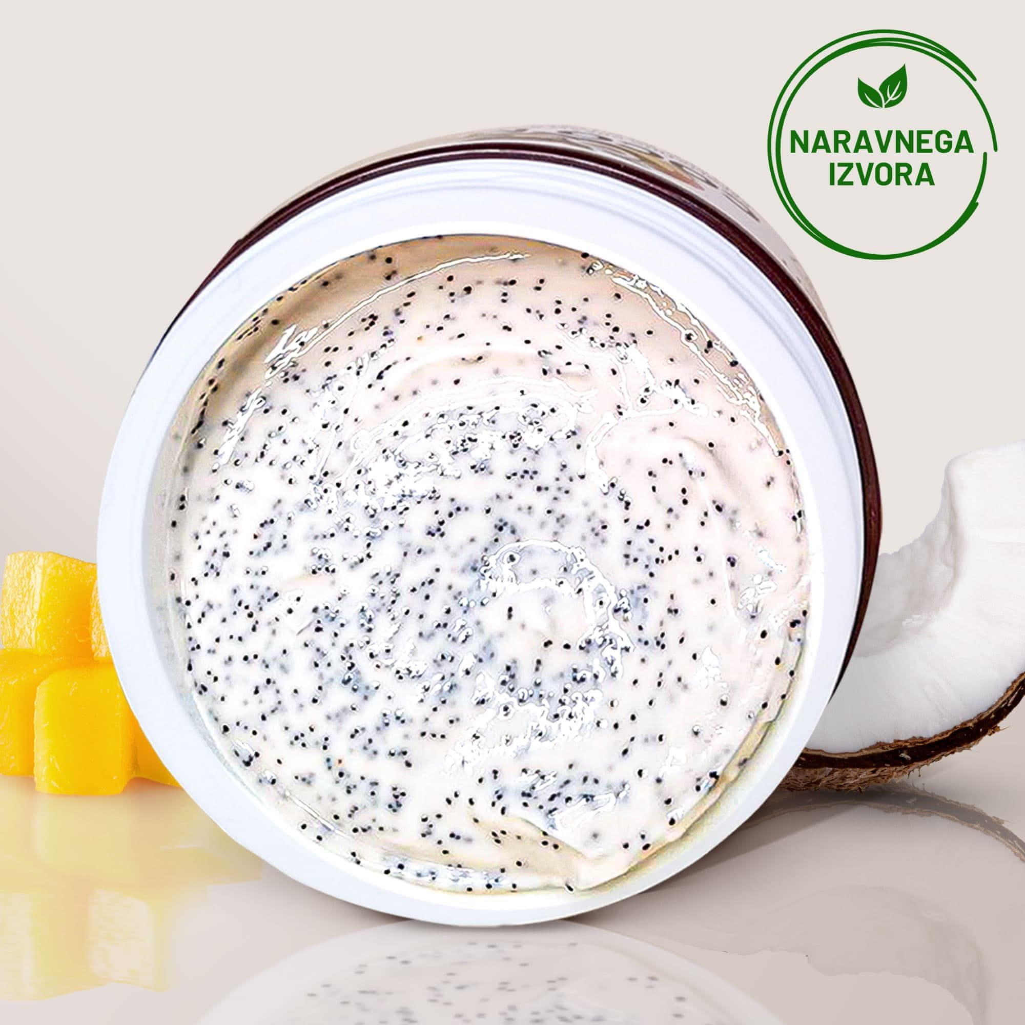 Aqua, Cetearyl Ethylhexanoate, Glycerin, Glyceryl Stearate SE, Cocos Nucifera Shell Powder, Phenoxyethanol, Ethylhexylglycerin, Sodium Acrylate/Sodium Acryloyldimethyl Taurate Copolymer, Aloe Barbadensis Leaf Juice, Mangifera Indica Fruit Extract, Cetearyl Alcohol, Parfum, Xanthan Gum.