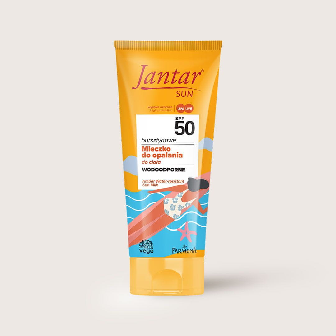Amber vodoodporno mleko za sončenje SPF 50 Celoten opis