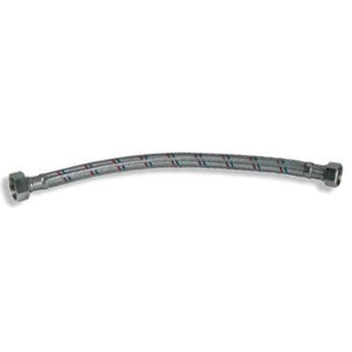 Cev iz nerjavečega jekla M3/8 „x M3/8“ 80cm Visoko odporna cev dolžine 80 cm iz EPDM in opleta iz visokokakovostnega nerjavečega jekla, z matico na obeh koncih, za priključitev vodovodnih pip pri umivalnikih, straniščih in kadeh. Cev ima na koncu matico z notranjim navojem 3/8 palca. Ta cev ima not