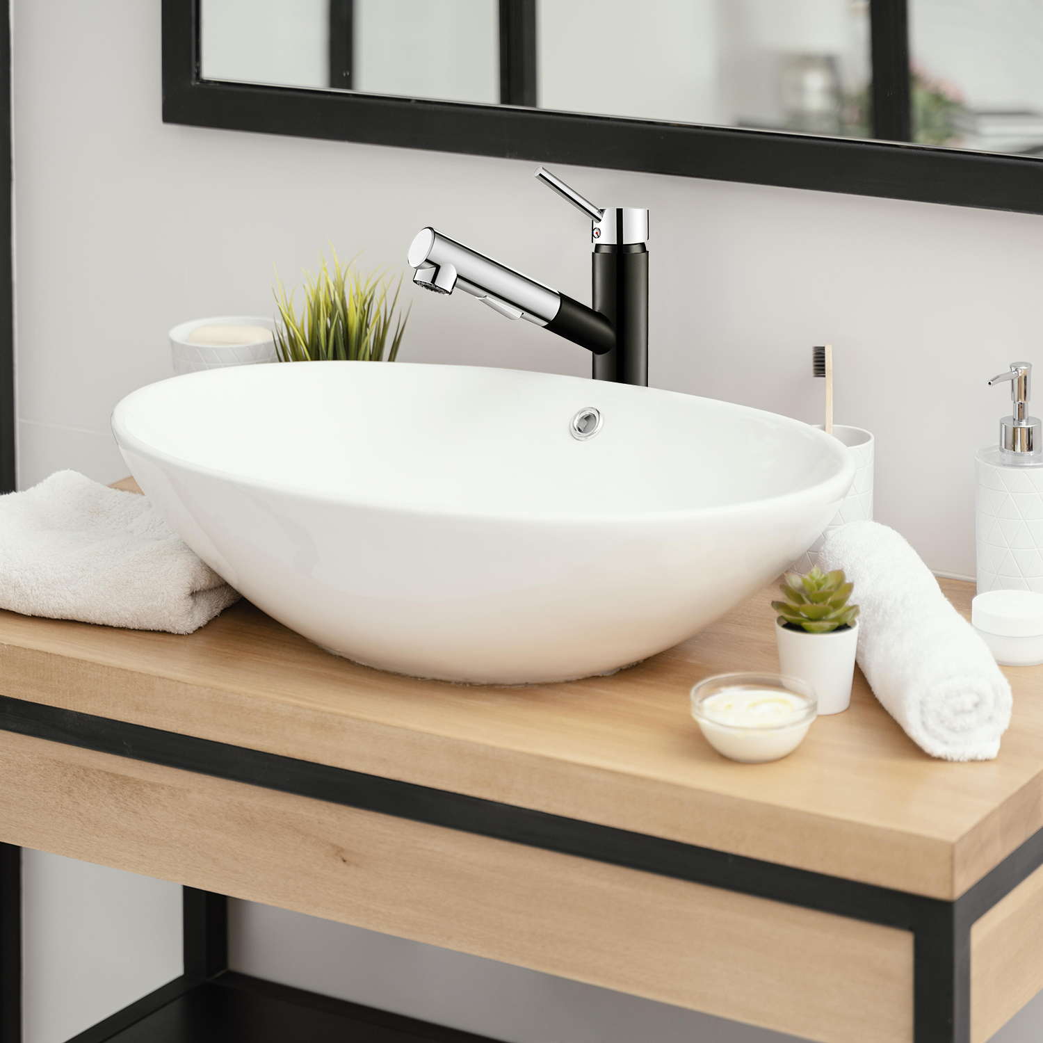 . Prekrita je z več plastmi kroma, ki jo ščitijo pred korozijo. Poleg tega je teh več plasti kroma zelo odpornih na praske in visoke temperature! ✴️ IZVLEČNI ROČAJ ZA VAŠE UDOBJE Kopalniška pipa z izvlečnim izlivom je