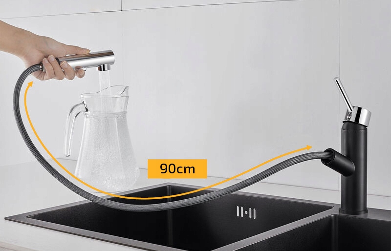 rešitev, ki vam omogoča priročno umivanje las, kopanje ali polnjenje nečesa na pultu ali v kadi. Ni vam treba namestiti držala za ročaj ali se ukvarjati z nerodno cevjo. Izvlečni izliv je odličen tudi za čiščenje samega umivalnika ali kadi.