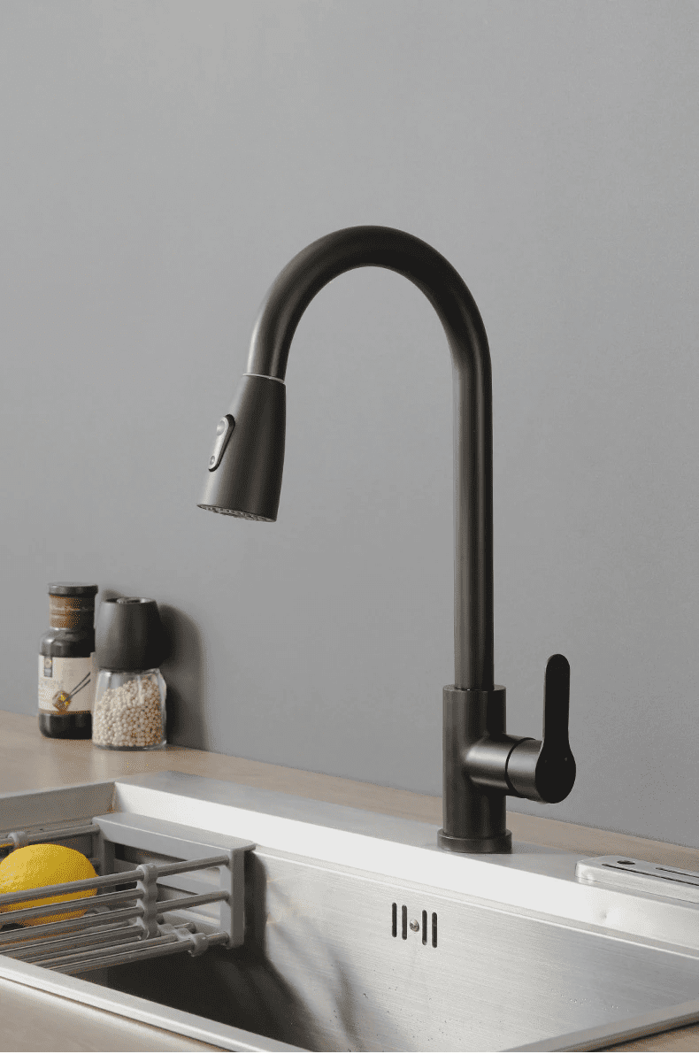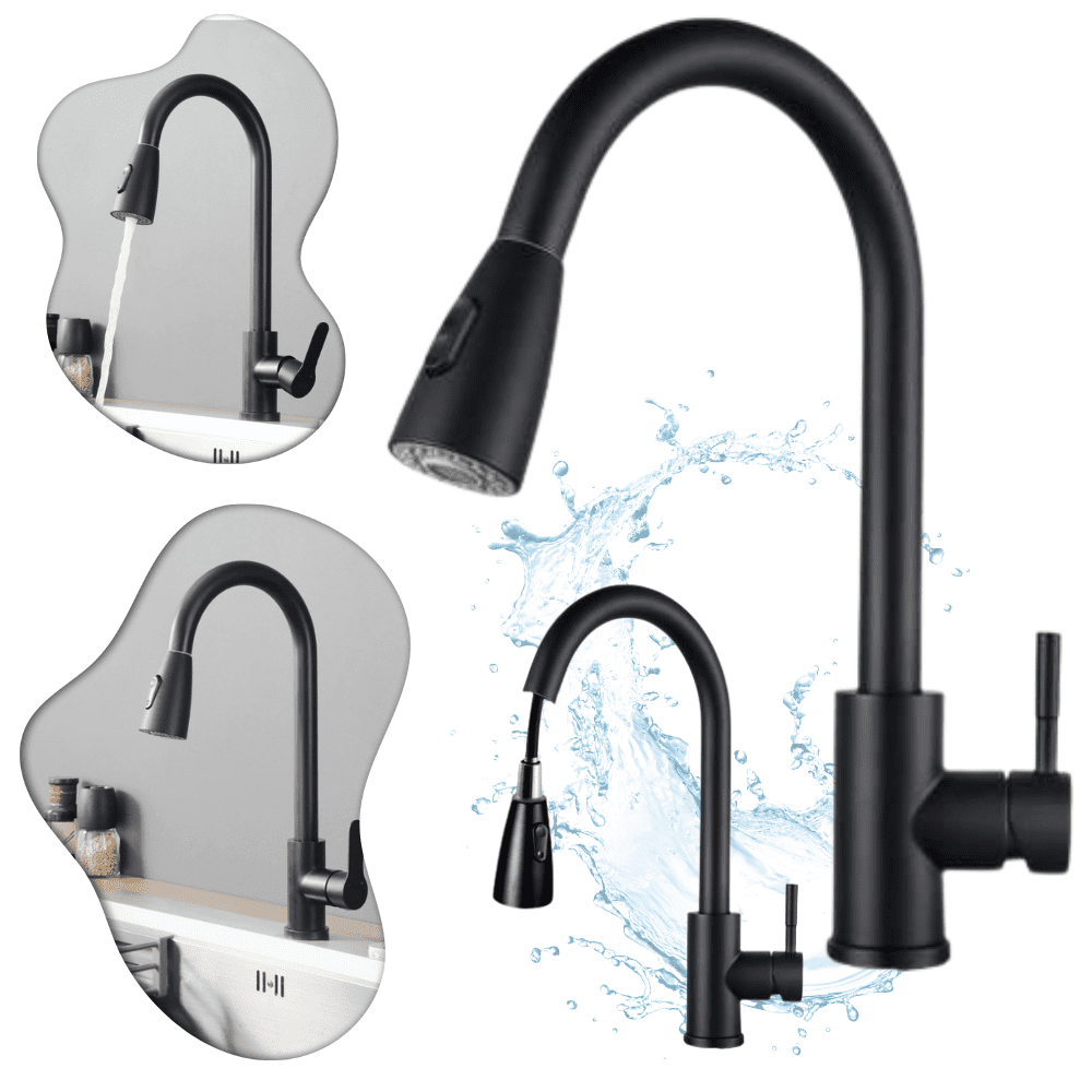 Odkrijte novo dimenzijo elegance v svoji kuhinji z našo mat črno kuhinjsko pipo.