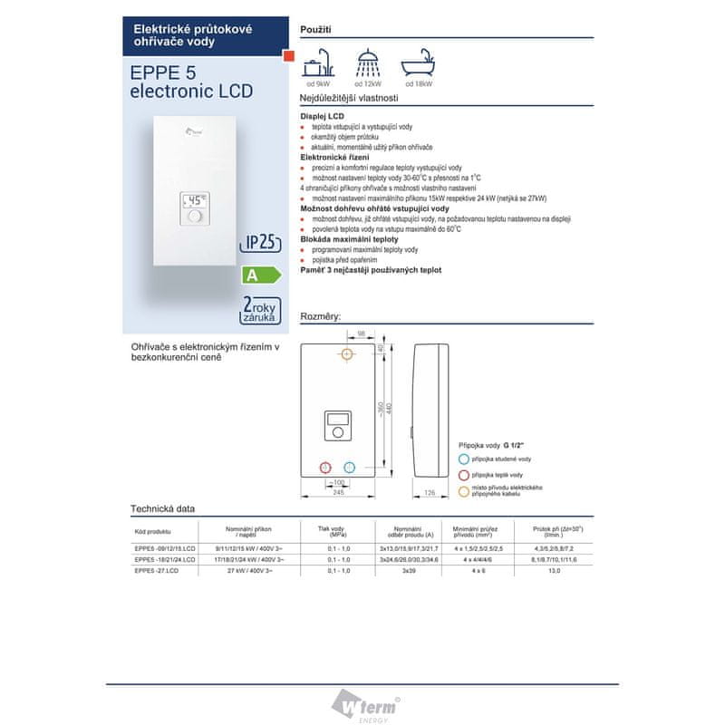 Wterm Pretočni grelnik Wterm KDE5-17/18/21/24 TLAČNI, ELEKTRIČNO KRMILNI 10974