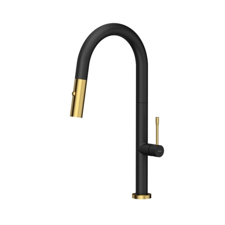 QUADRON Kuhinjska armatura QUADRON FELICITY z vrtečim izlivom, črn, z zlato obdelavo, stojna namestitev, izjemna kakovost in stil.