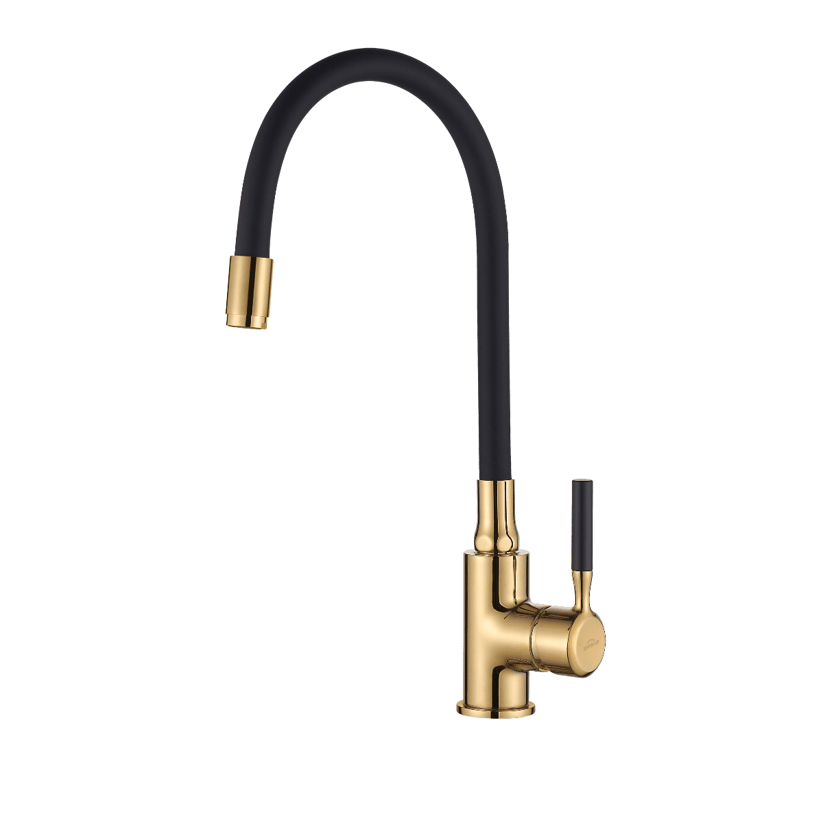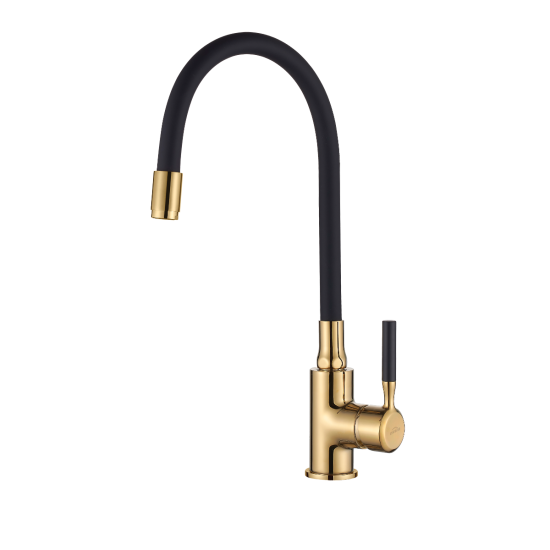 • Del ročaja pipe je prevlečen s črnim silikonom v barvi izliva, zaradi česar zlata barva ne prevzame celote, temveč ustvari subtilno celoto.