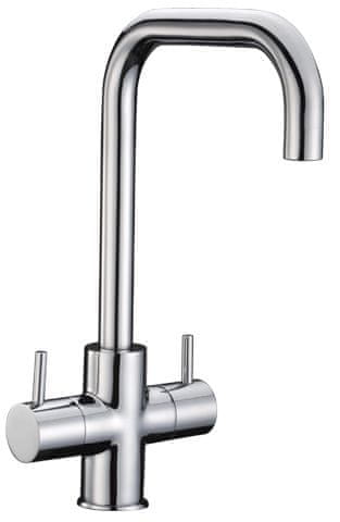 Kuhinjska armatura z dvoročnim upravljanjem modernega dizajna v krom izvedbi. Celoten opis