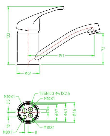 Blitz kuhinjska armatura 611/3, 3 cevi, kratki izliv
