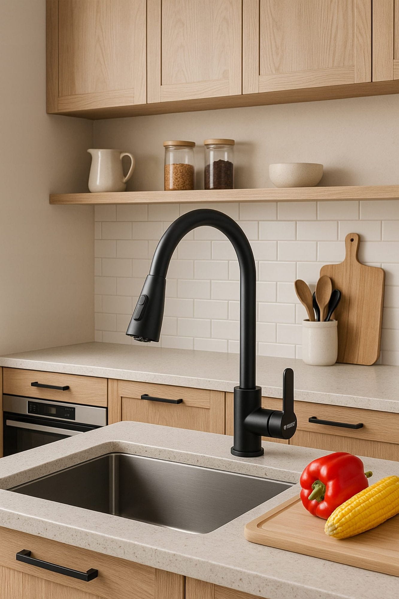 Ta samostoječa armatura za pomivalno korito z izvlečnim izlivom in dvema pršilnima funkcijama je praktična rešitev za vsako kuhinjo. Poenostavlja pomivanje posode, polnjenje loncev in vsakodnevna kuhinjska opravila, saj združuje funkcionalnost s sodobnim dizajnom.