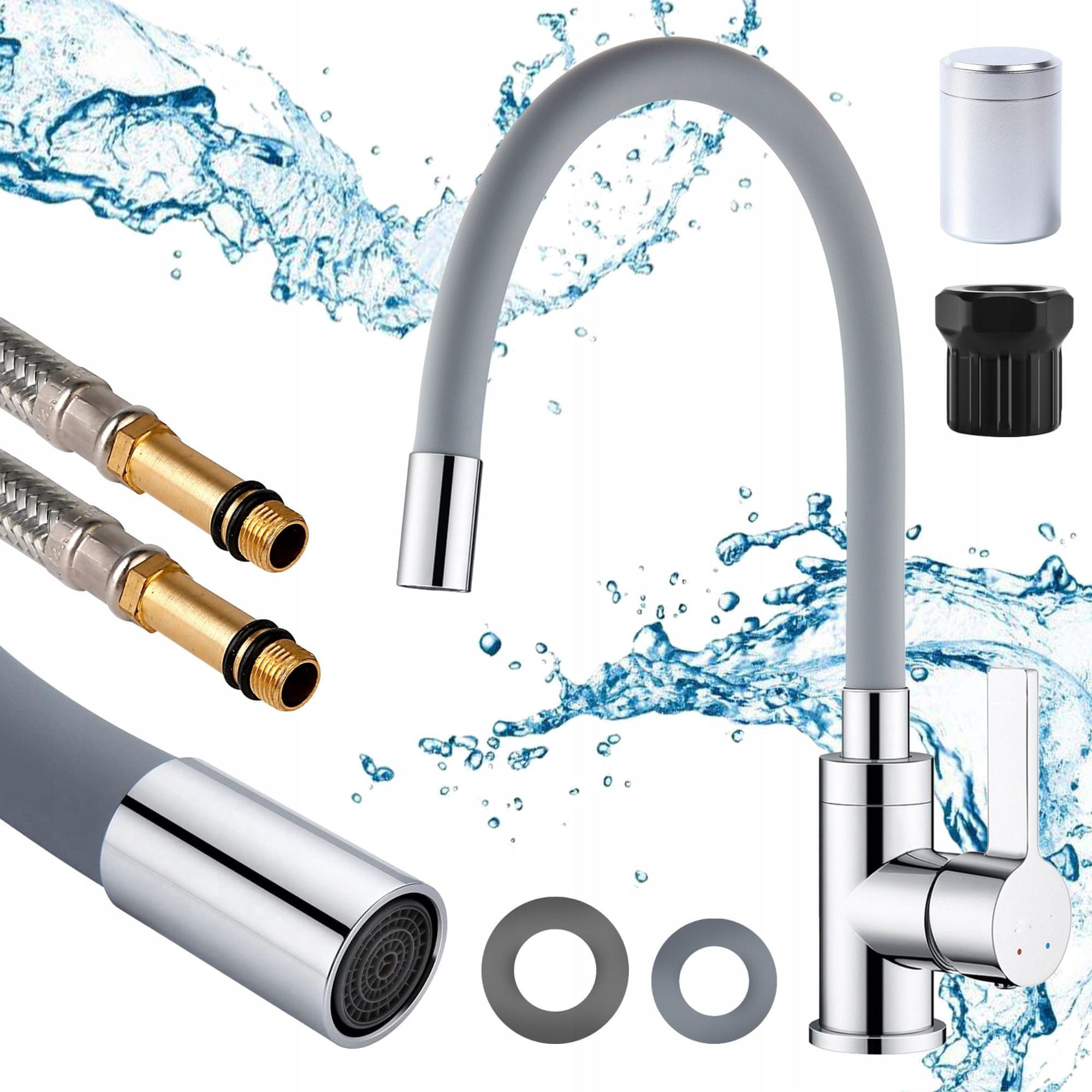 Siva kuhinjska pipa s fleksibilnim, gibljivim izlivom je funkcionalna rešitev za vsako kuhinjo. 360° vrtljiva pipa olajša vsakodnevno uporabo, vgrajen perlator pa zagotavlja prihranek vode in enakomeren curek. Idealna za moderno notranjo opremo in intenzivno uporabo.