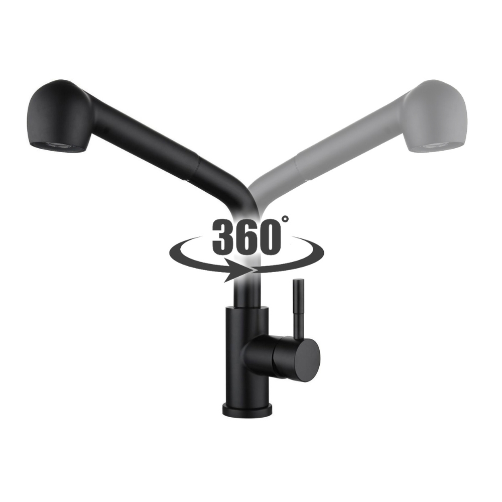 shumee Kuhinjska pipa z izvlečnim izlivom 360°, črna, prostostoječa, za pomivalno korito