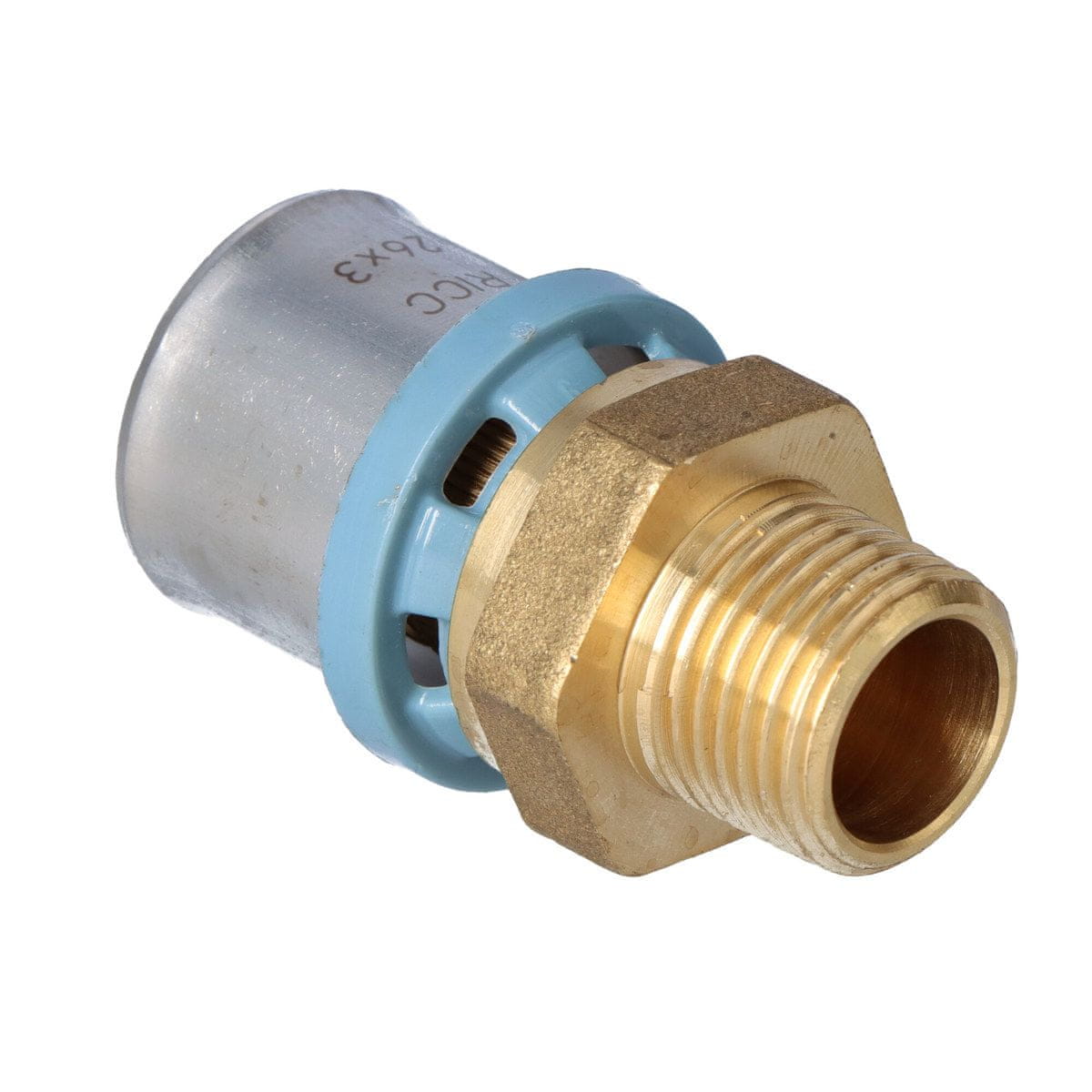 Cevni sistem CLEVERFIT – medeninasti stiskalni fitingi: PURMO CLEVERFIT priključni fiting z zunanjim navojem 26×1/2" GZ