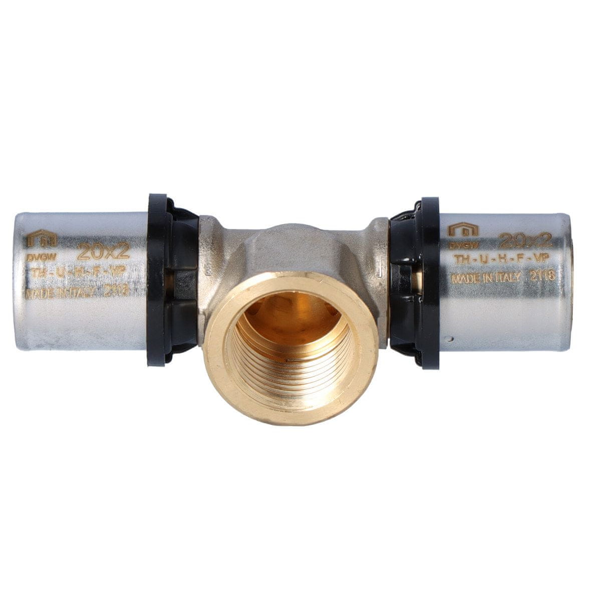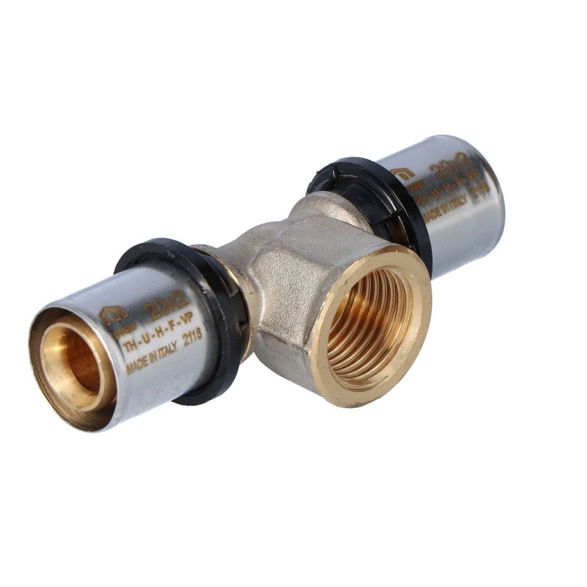Cevni sistem CLEVERFIT – medeninasti stiskalni fitingi: PURMO CLEVERFIT T-kos, izhod z notranjim navojem 20×1/2" GWx20