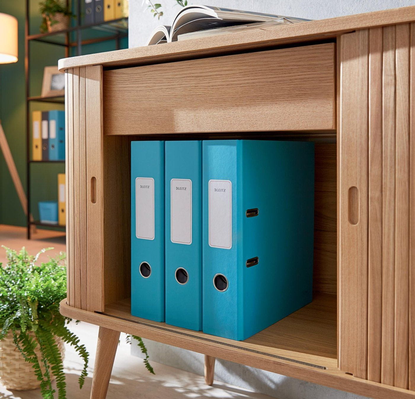• Serija blagovne znamke Leitz Cosy omogoča, da se boste počutili kot doma, ne glede na to, kam vas vodi vaš delovni dan. Z minimalistično zasnovo in vabljivo matirano površino boste svojemu delovnemu prostoru dodali slog in barvo. Edinstven 180-stopinjski vzvodni mehanizem, ki omogoča 50 % širše odpiranje in 20 % hitrejše rokovanje z mapami. Ta mehka površina za mape je odličen dodatek za vaš dom ali pisarno, saj zagotavlja, da boste ves dan sproščeni in produktivni.