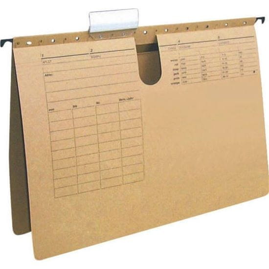 Viseče mape iz recikliranega papirja 250 g/m2 Drsnik z etiketo Format: A4 Oblikovanje: z veznikom Barva: naravno rjava Celoten opis