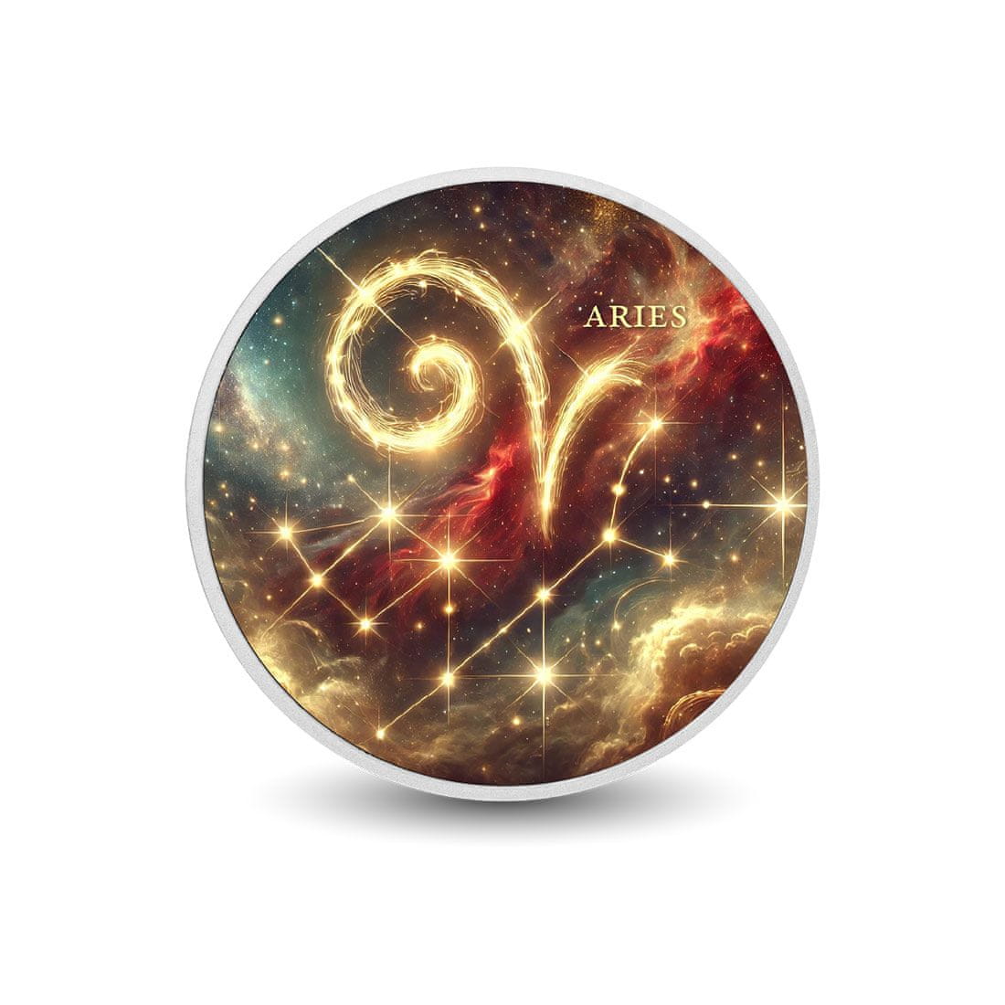 • . Ta osupljiv kovanec je popoln tako za ljubitelje astrologije kot za zbiratelje, saj z izjemno izdelavo in podrobnostmi ujame bistvo simbola ovna.