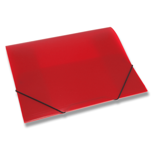 Mapa s tremi zavihki z gumico za zapiranje. Narejena je iz močnega prozornega polipropilena debeline 400 mikronov. Za dokumente A4.