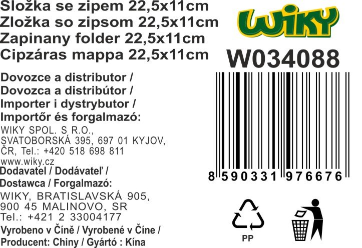 Mapa z zadrgo 22,5×11 cm 4 barve (modra, črna, svetlo modra, oranžna) Celoten opis