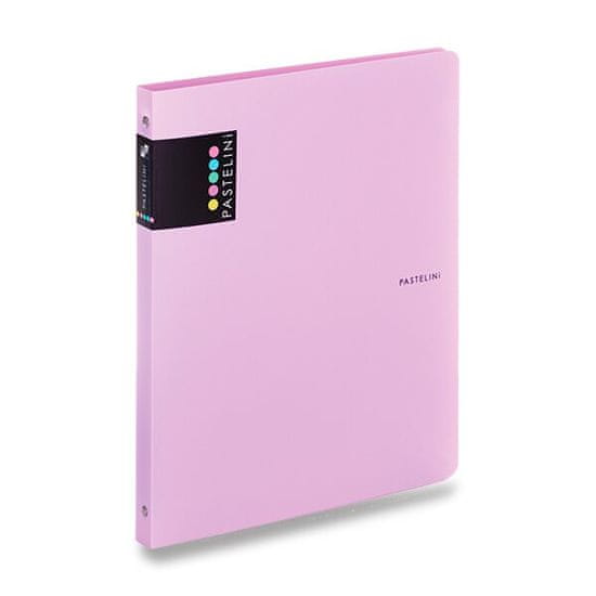 Polipropilenski spenjač s 4 obroči v sodobnih pastelnih barvah. Ø obroča 15 mm. Za dokumente A4. Hrbtišče 20 mm. Za 70 listov.