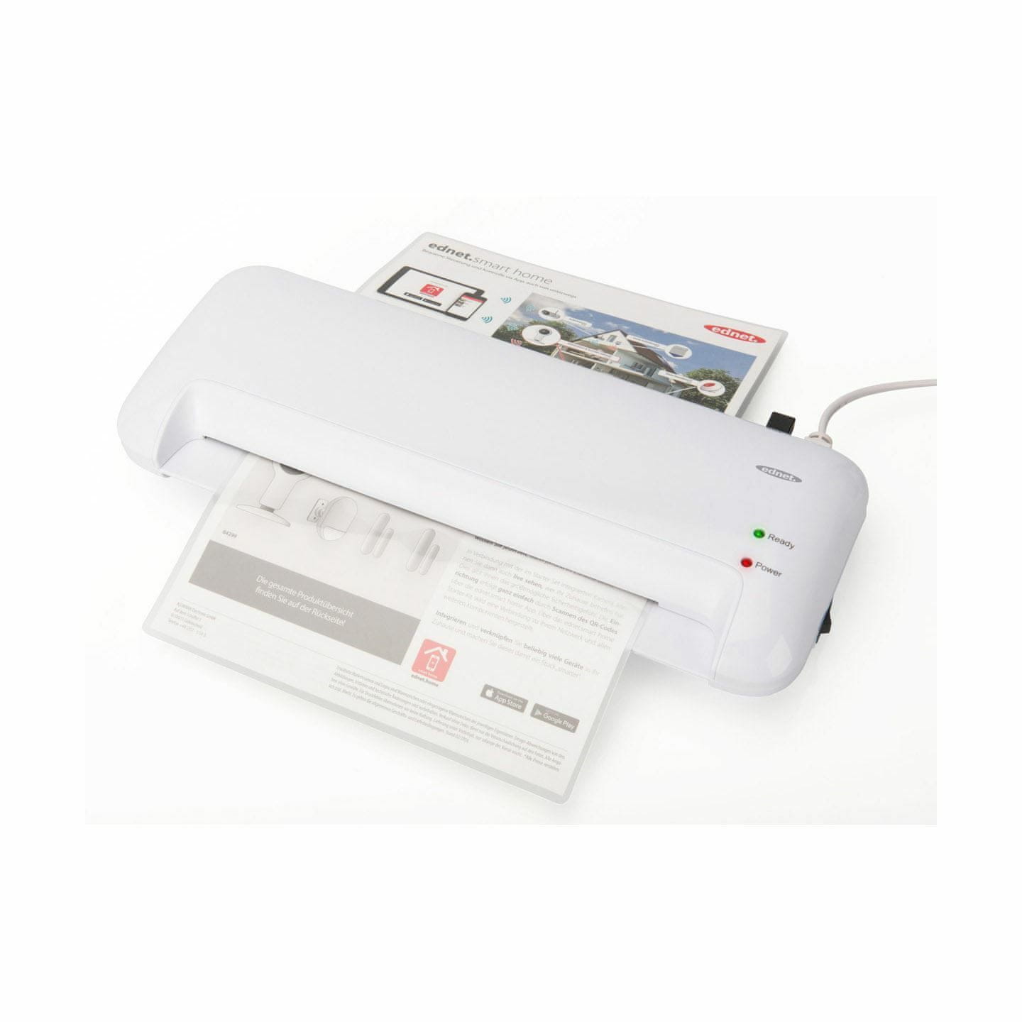 Ednet plastifikator oz. laminator A4 za zaščito dokumentov, slik, reklam, receptov, vgrajena keramična grelna plošča, omogoča tudi hladno plastificiranje..