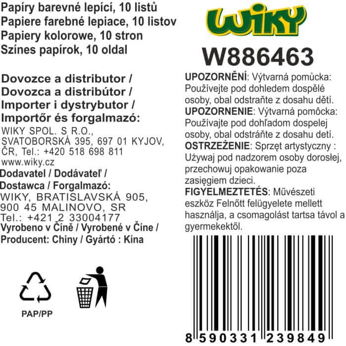 • Samolepilni papirji – Format: Število listov: 10 (10 barv)
