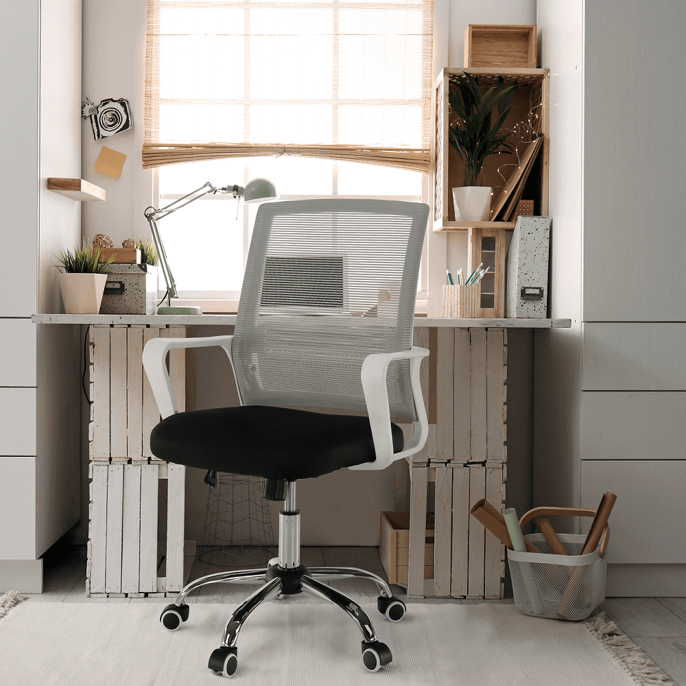 eoshop Pisarniški stol Apolo 2 New, siva mreža/črno sedišče, belo ogrodje