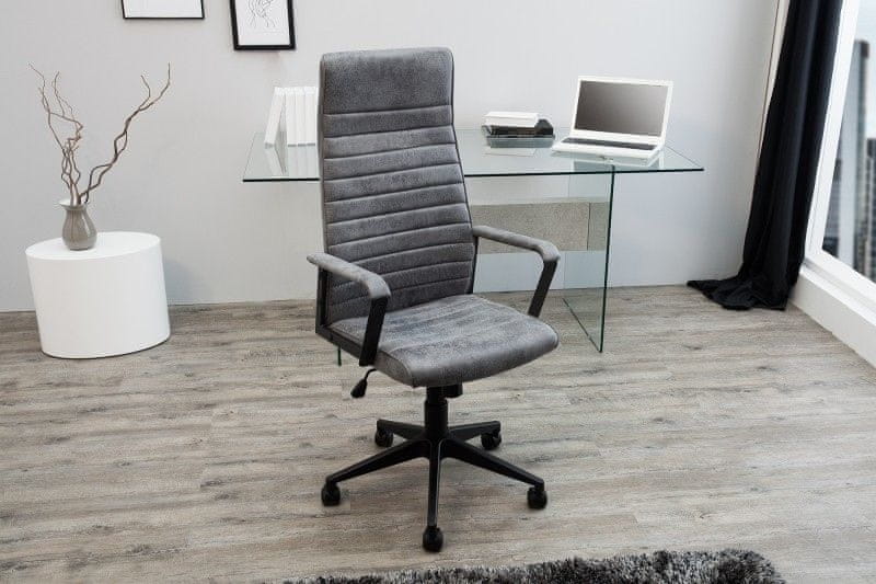 INVICTA pisarniški fotelj LAZIO HIGH sive barve. Lazio High je fotelj z zelo udobnim sedežem v vintage sivi barvi z nasloni za roke. Ima trpežno podlago in visoko naslonjalo.