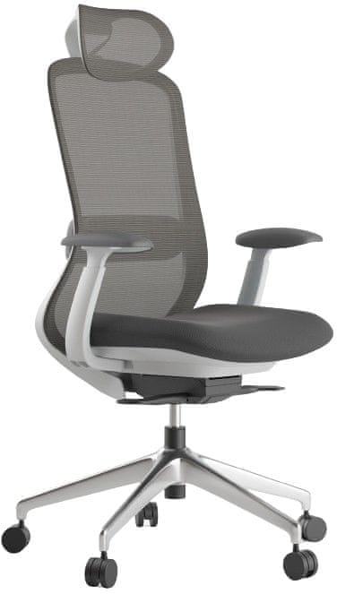 Udobno oporo hrbtu zagotavlja zračno mrežasto naslonjalo, ki vključuje po višini nastavljivo bederno oporo skupaj z višinsko in kotno nastavljivim vzglavnikom.